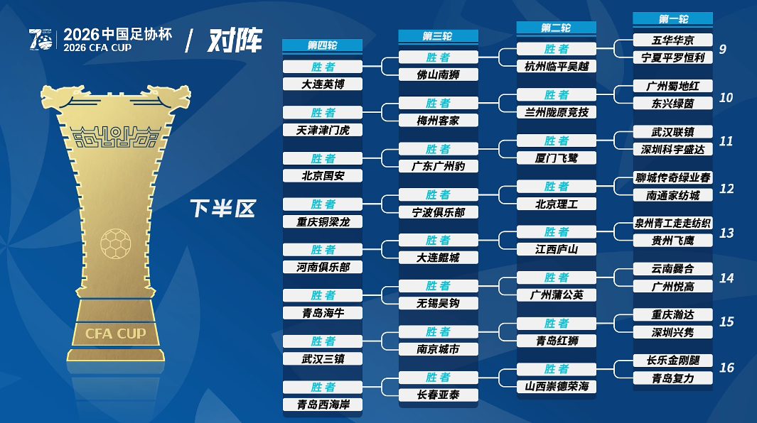 刚刚,2026年中国足协杯抽签仪式举行。按照赛制,前四轮比赛对阵以及球队落位全部产生。