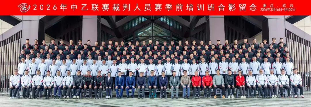 3月17日,2026年中乙联赛赛季前裁判人员培训班在浙江嘉兴开班,170余名讲师、裁判监督及裁判员齐聚一堂。浙江省足球协会常务副主席陆翔参加开班仪式并致欢迎辞。