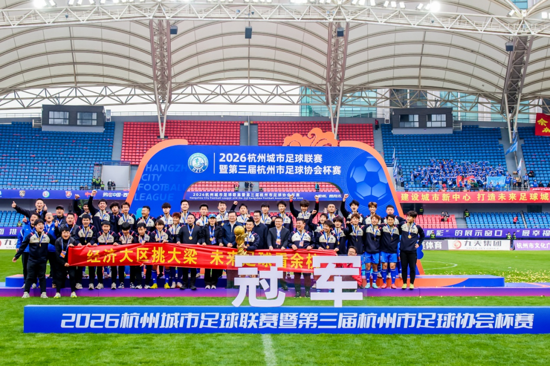 3月21日下午,随着终场哨声在上城体育中心响起,2026杭州城市足球联赛暨第三届杭州市足球协会杯赛总决赛落下帷幕。余杭队以2:0战胜富阳队,捧起本赛季杭超联赛冠军奖杯。