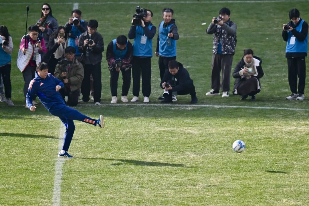 低温还在继续,王江泾镇足球场的草皮上已是一派热火朝天。身披红色战袍的秀洲队球员在3℃的气温下完成了两个小时的集训。另一边,海宁队训练场里,00后年轻球员正在进行最后一轮战术演练。