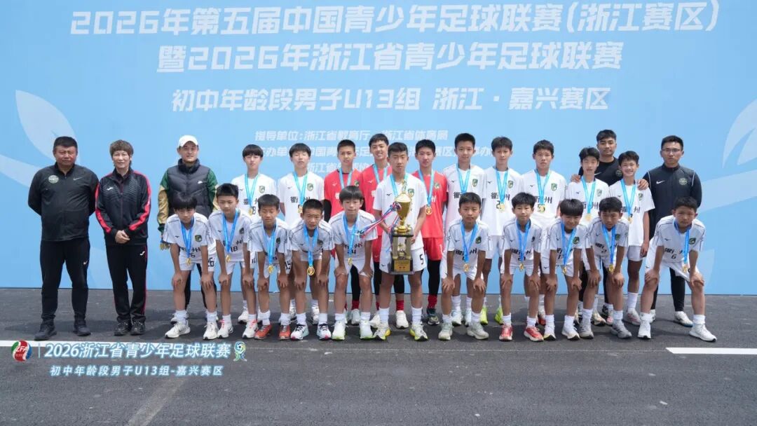随着主裁判终场哨响,2-1 的比分定格。衢州信安 FC 的小球员们奔跑相拥,庆祝这场来之不易的胜利!他们凭借顽强的斗志、出色的团队配合与关键球员的精彩发挥,战胜强敌,荣获 2026 年浙青赛男子初中年龄段 U13 组冠军!