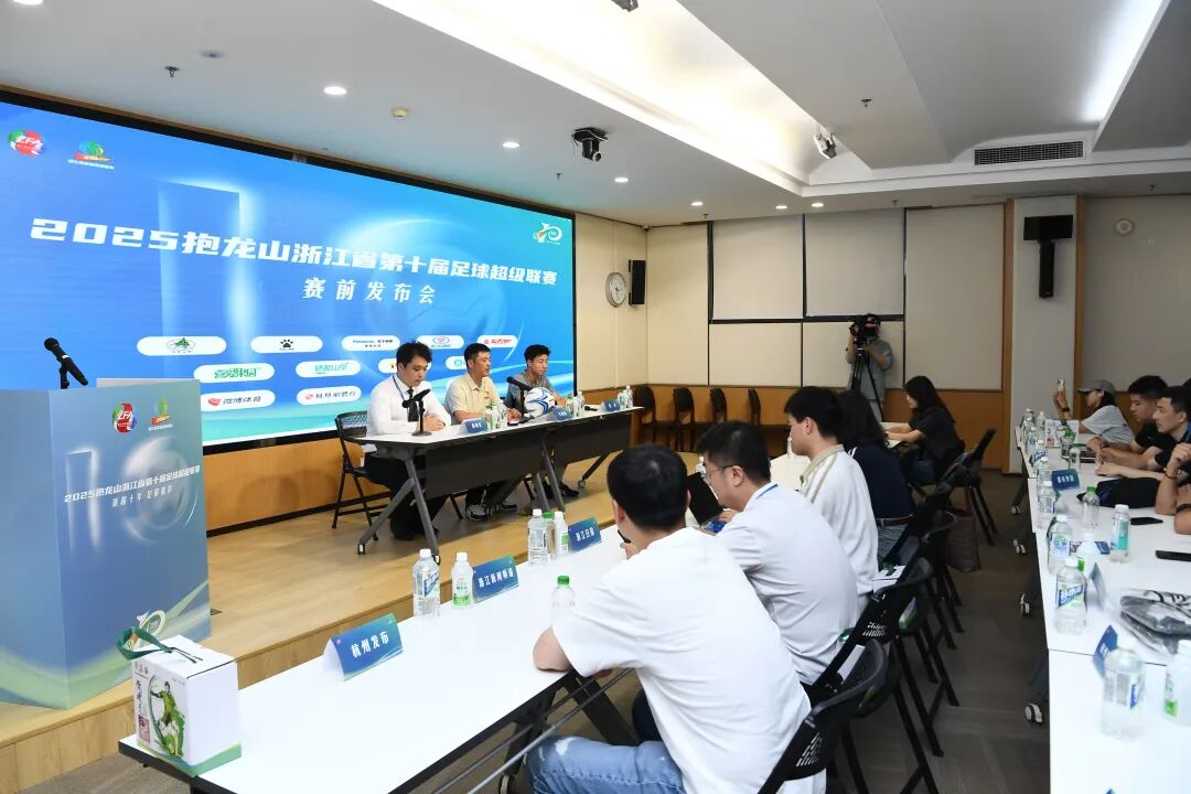 今天下午,2025抱龙山浙江省第十届足球超级联赛赛前发布会在萧山体育中心举行,同时进行了揭幕战的赛前新闻发布会。