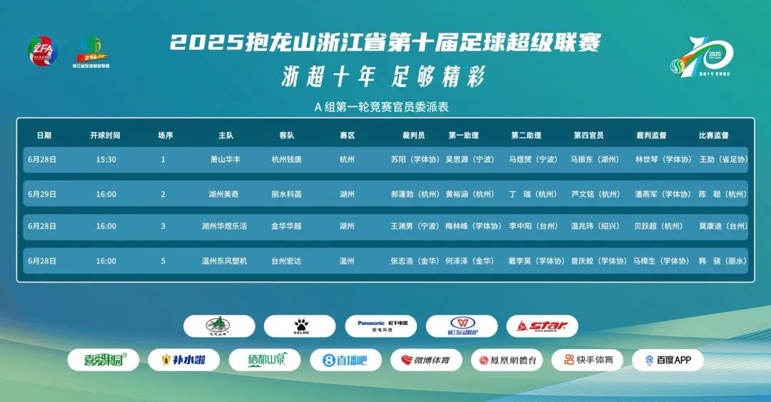 2025浙超联赛A组第三轮、B组第二轮对阵表及竞赛官员委派表