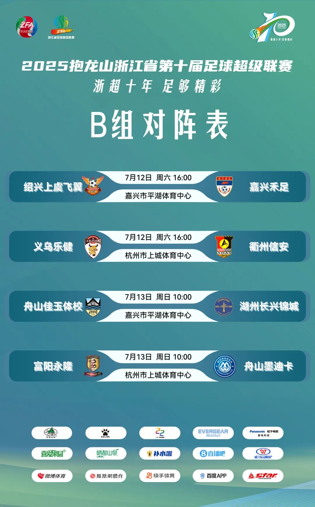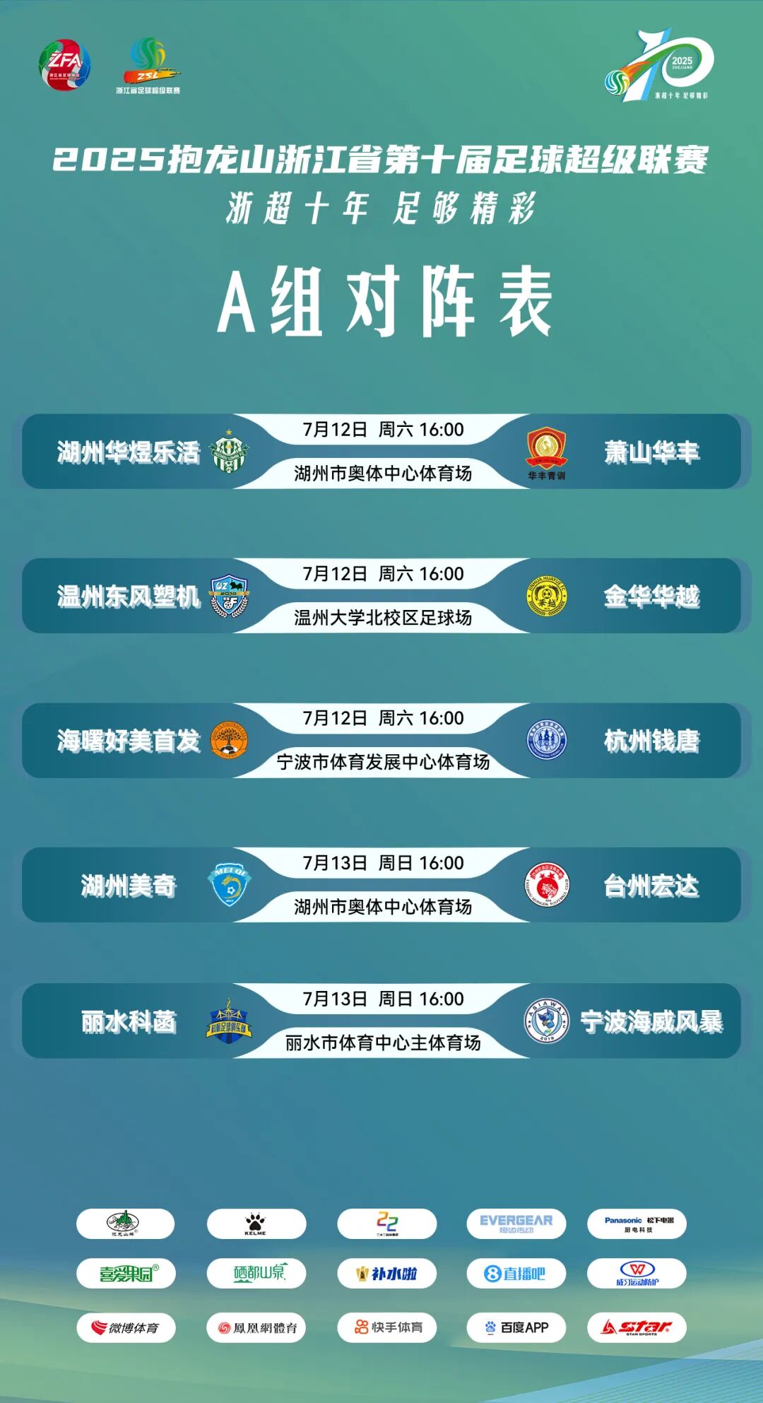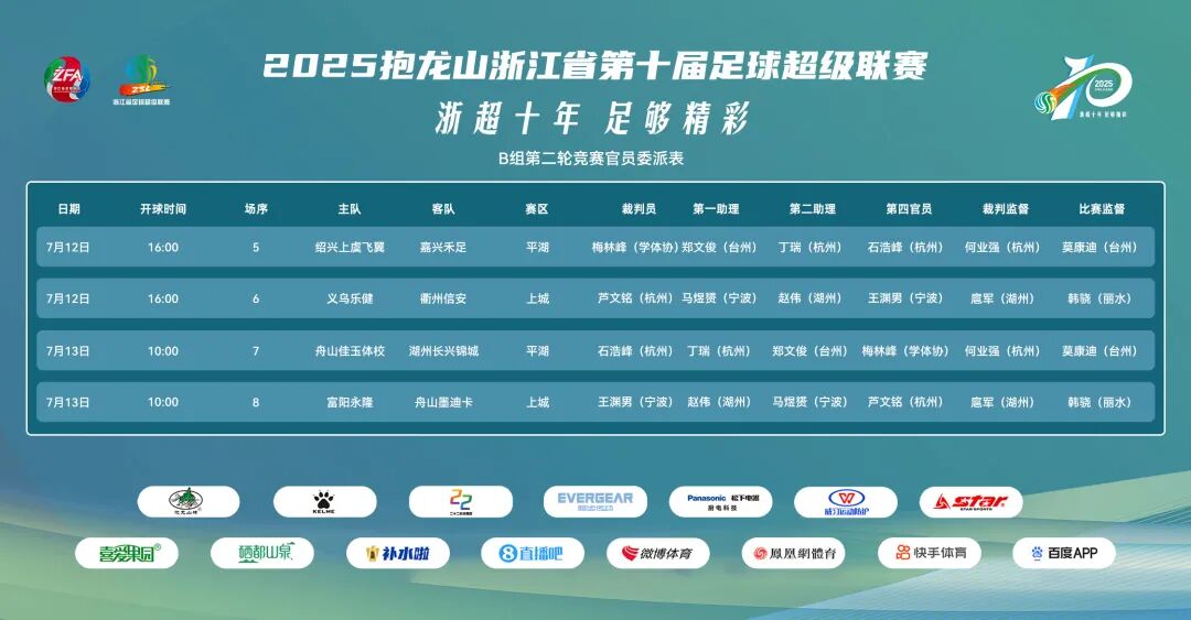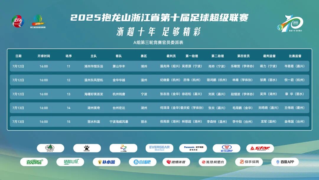 2025浙超联赛A组第三轮、B组第二轮对阵表及竞赛官员委派表
