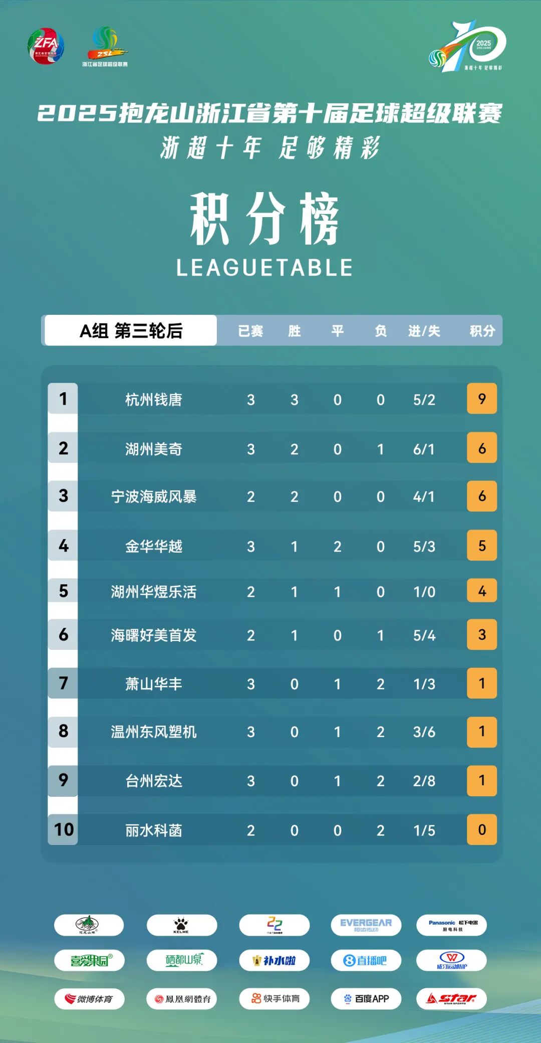 2025浙超联赛A组第三轮 简报