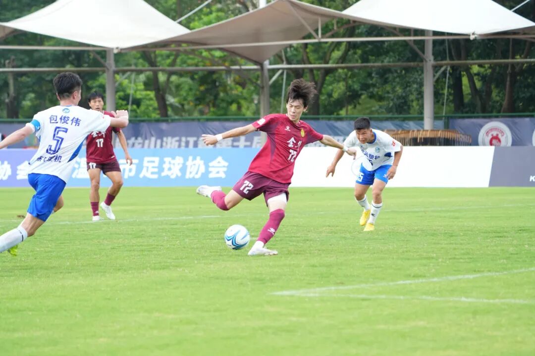 上半场第36分钟,温州东风塑机队27号球员宇智豪破门,助主队1:0领先。易边再战,金华华越队于第50分钟由72号包松涛扳平比分。第57分钟,温州队9号黄景峰建功,比分改写为2:1。仅两分钟后,金华华越队29号刘弘烨迅速回应,将比分再度扳平。此后,金华华越队包松涛接管比赛:第64分钟,他梅开二度助客队反超;补时第96分钟,他再入一球完成帽子戏法,锁定胜局。最终,金华华越队客场4:2逆转战胜温州东风塑机队。