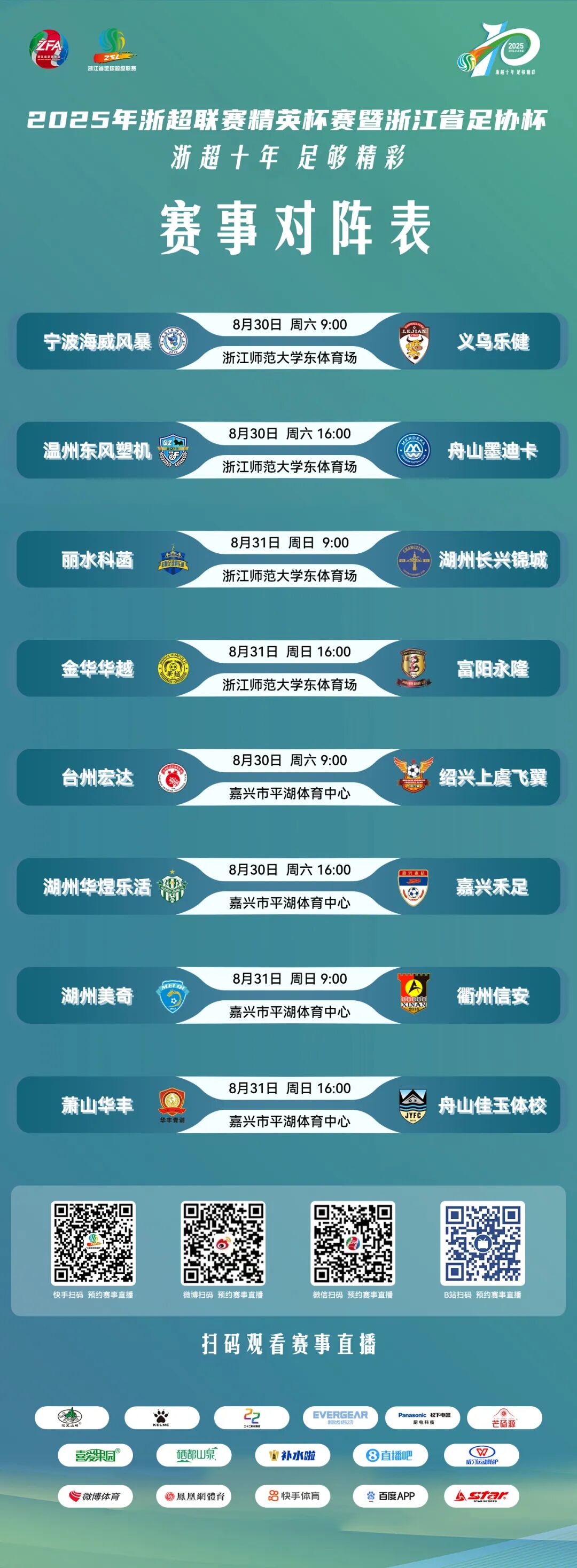 2025浙超联赛精英杯暨浙江省足协杯第一轮对阵表及竞赛官员委派表
