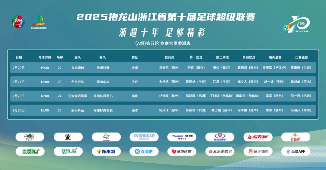 2025浙超联赛A组第六轮、B组第五轮竞赛官员委派表