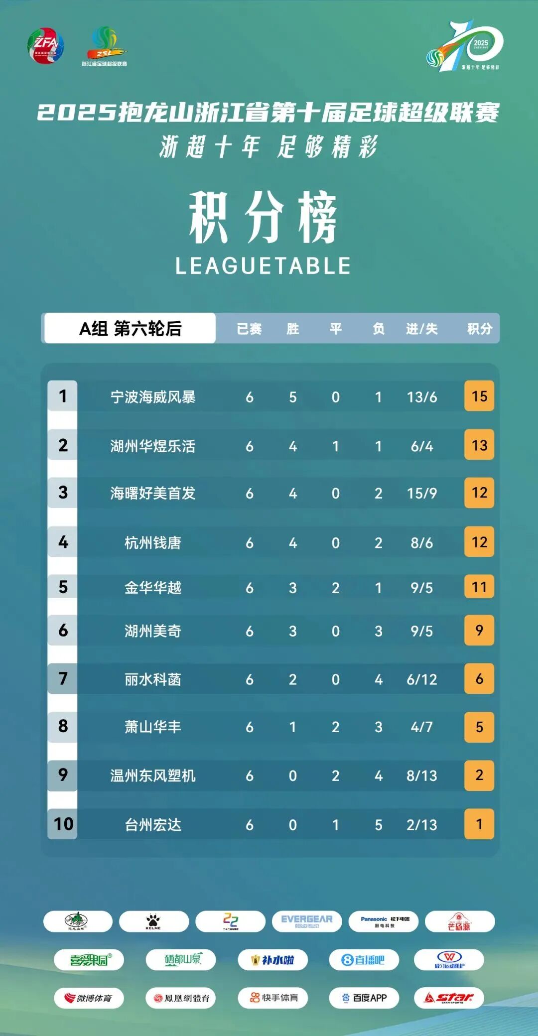 【A组六轮赛后积分榜】