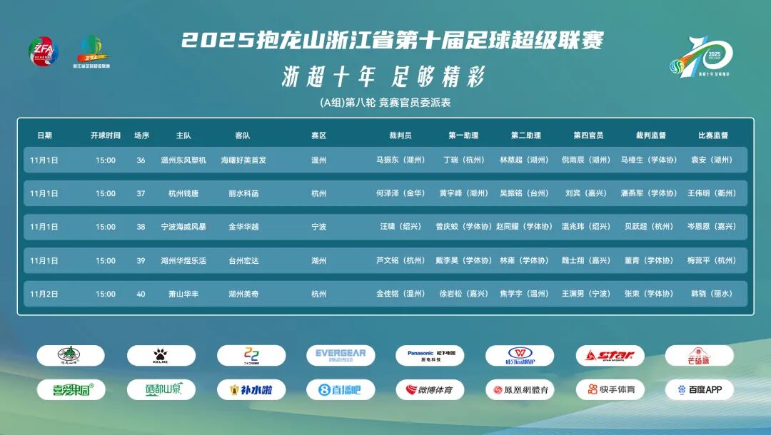 2025浙超联赛A、B组第八轮竞赛官员委派表