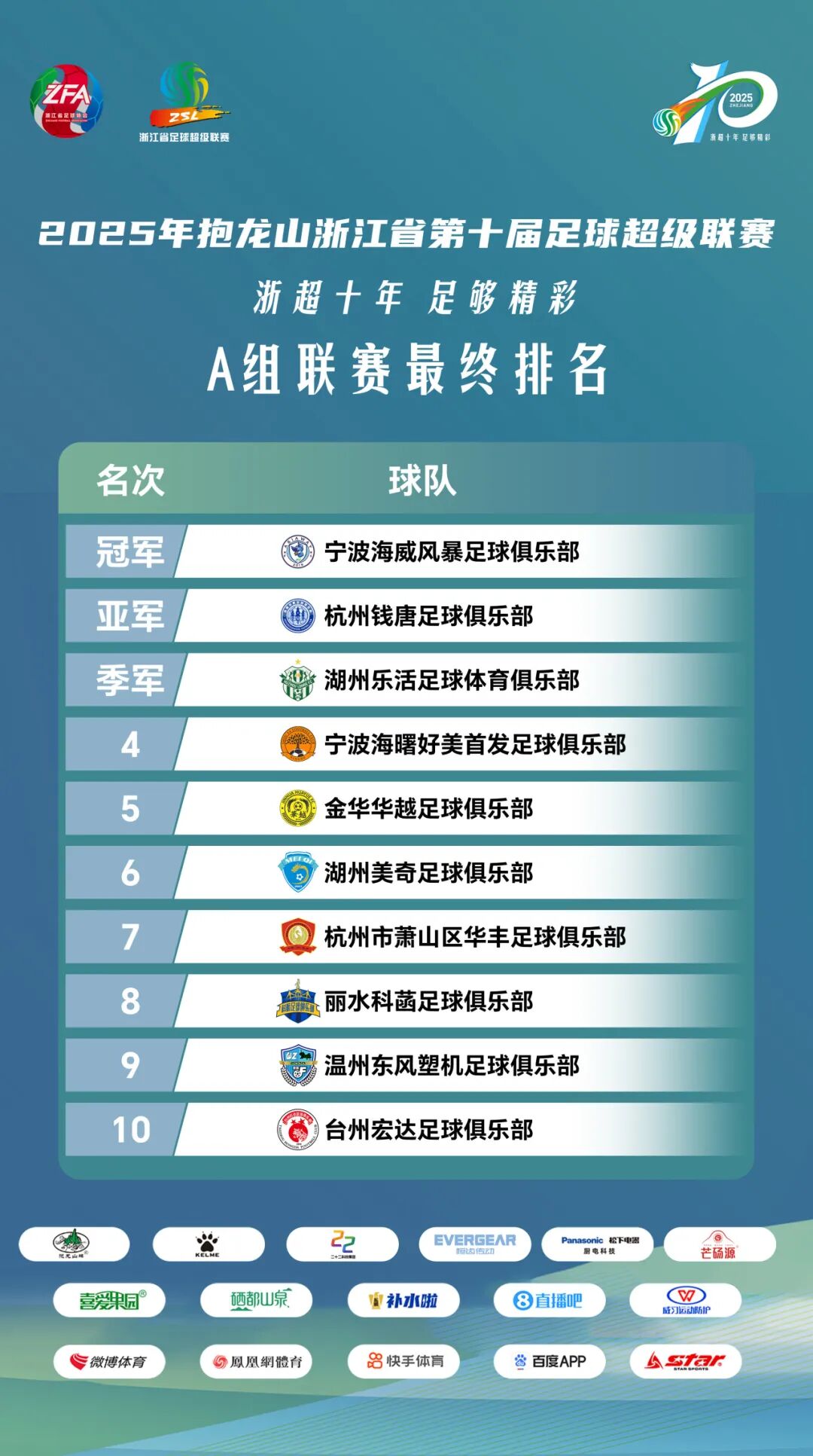 谨此,向所有参赛球队、工作人员及十年相伴的球迷致以诚挚谢意。冠军归属与数据排名已尘埃落定,但浙江草根足球的前行之路未止。期待浙超联赛以此为新的起点,迈向下一个更加精彩的十年。