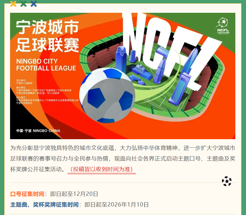 宁波城市足球联赛口号征集