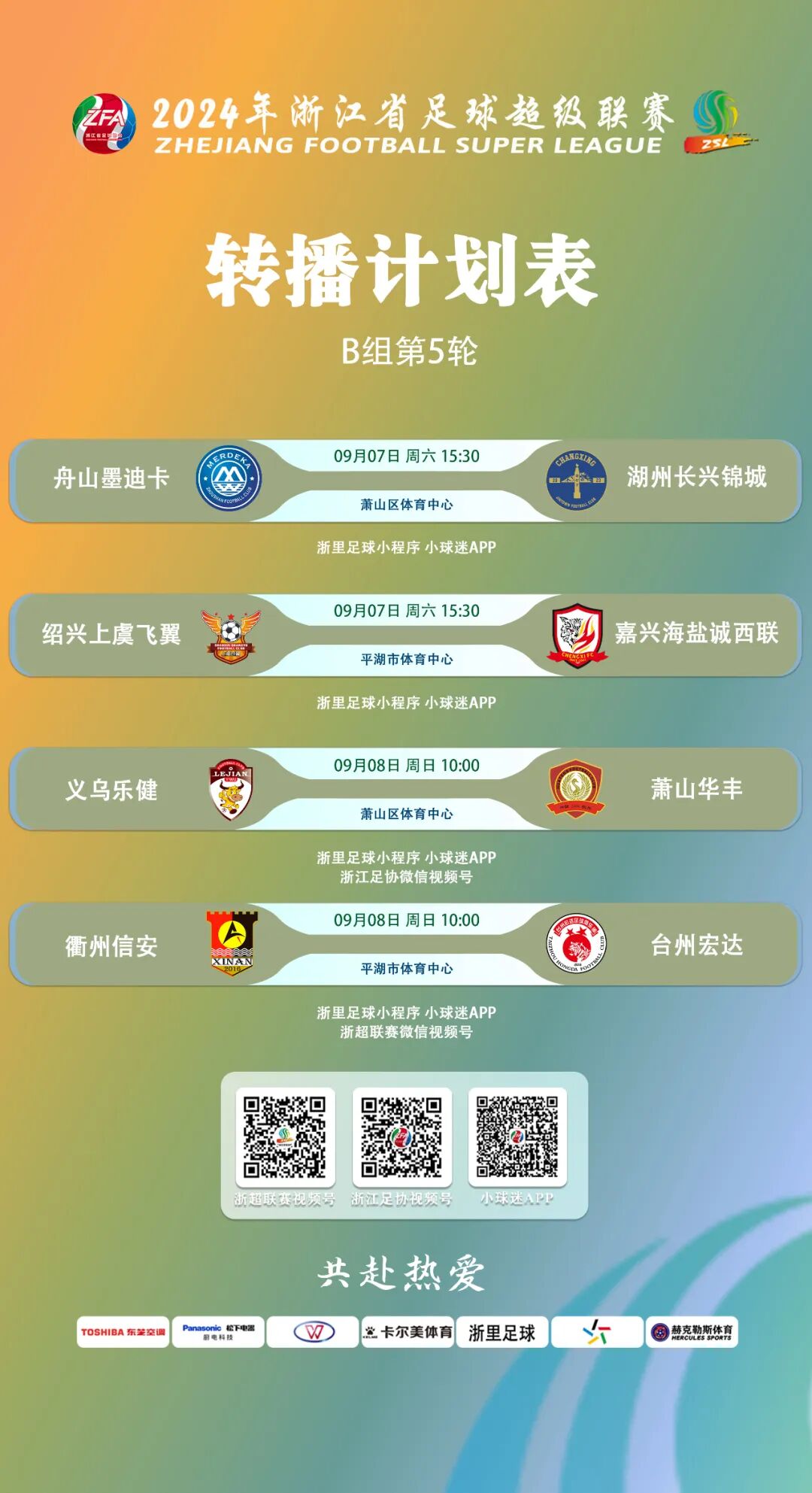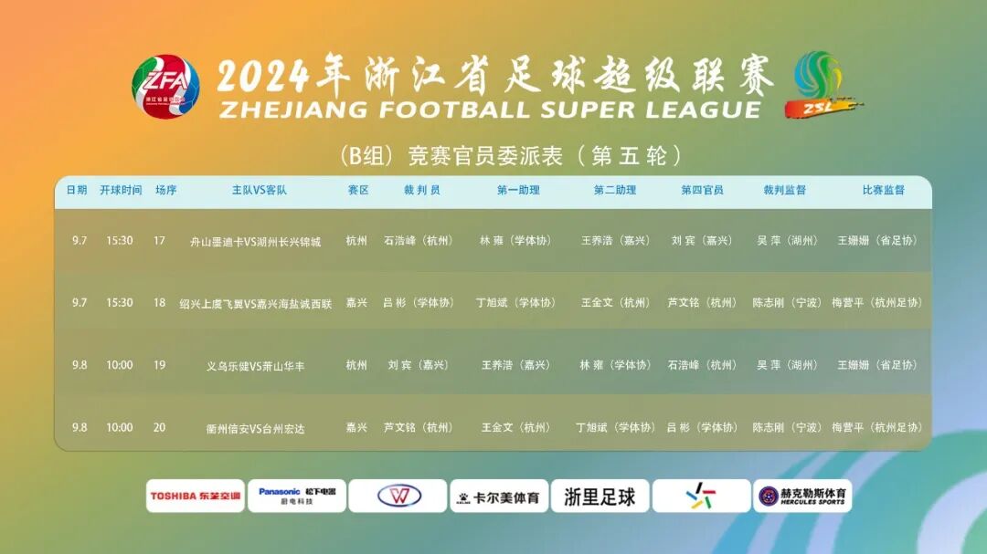 2024浙超联赛B组第八轮转播预告及官员委派名单