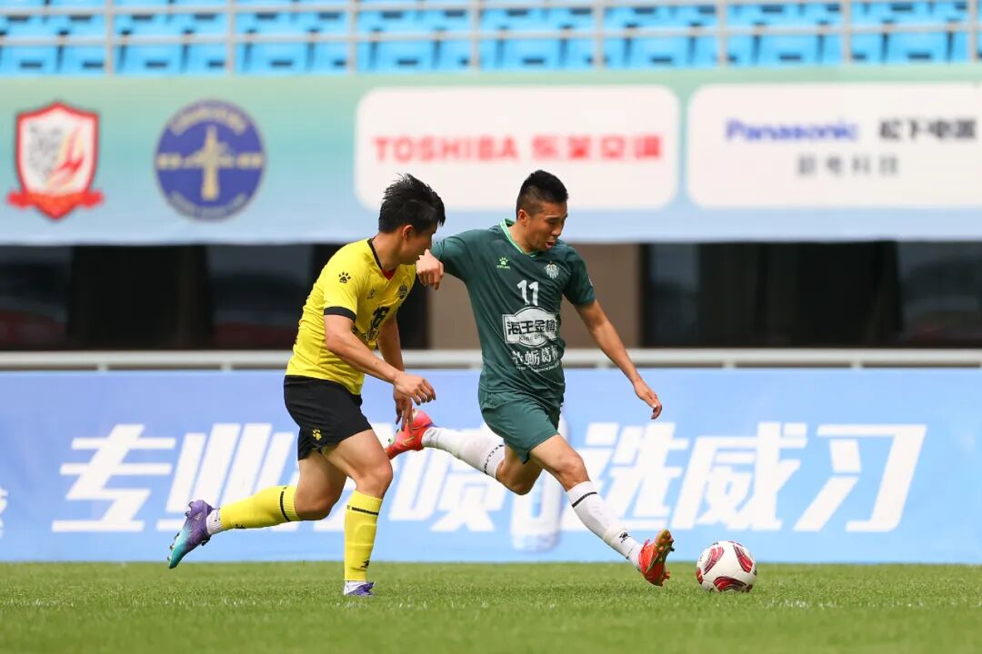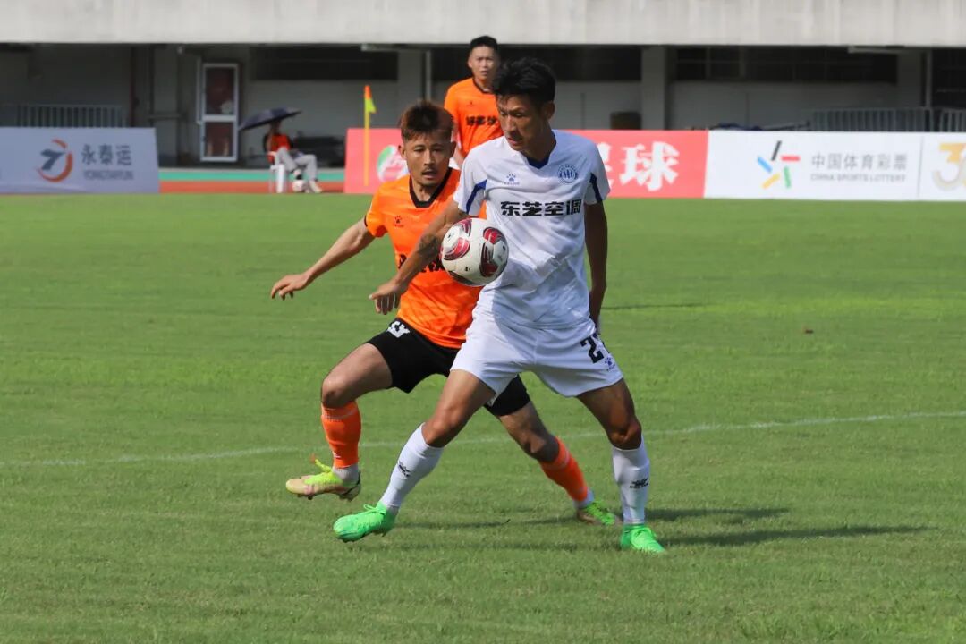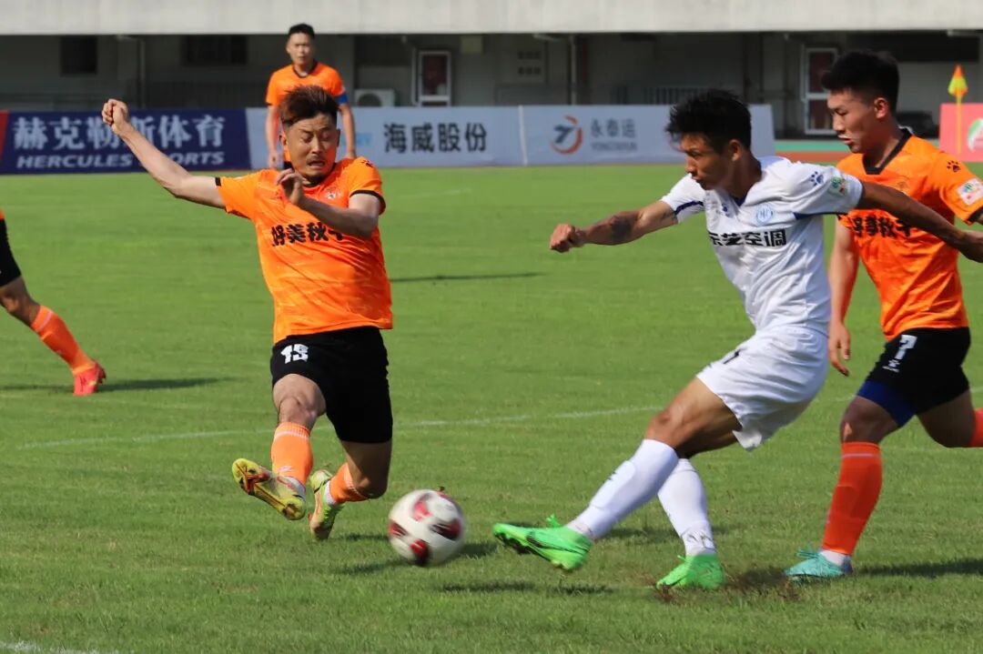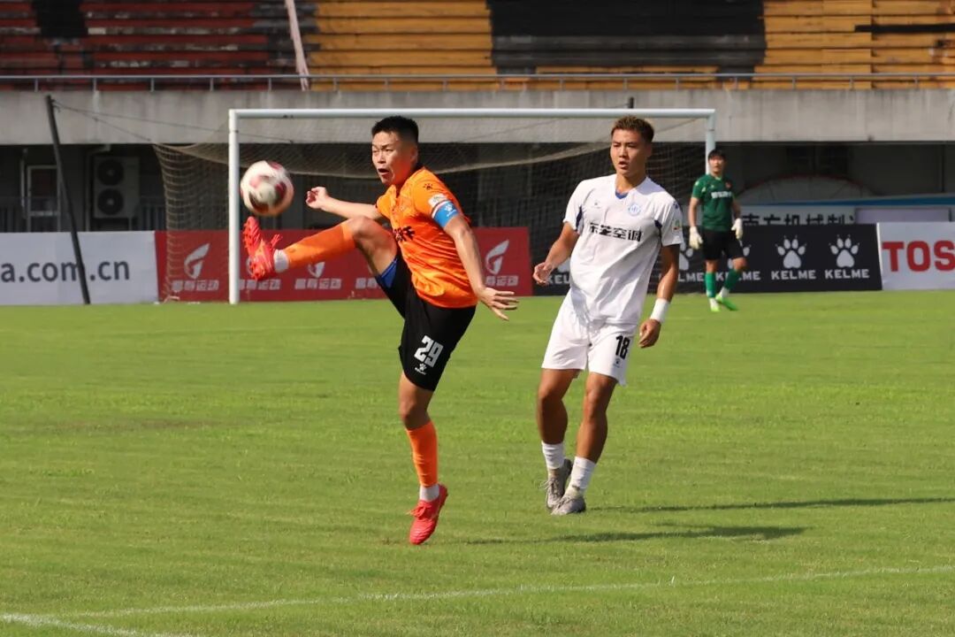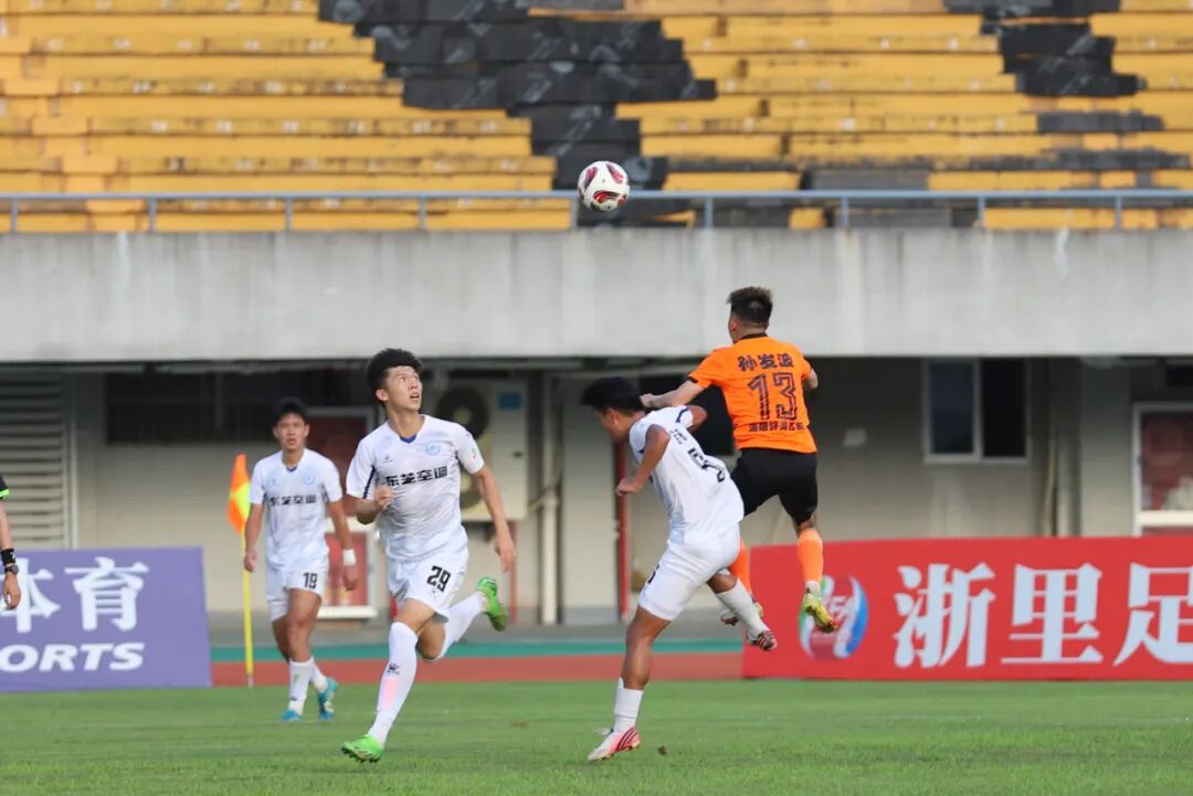 上半场第30分钟,萧山华丰16号赵宸浩任意球直接破门。