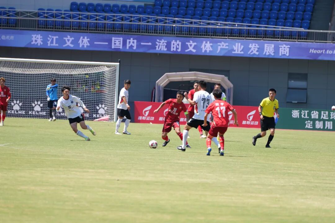 上半场第9分钟,湖州美奇率先进球,88号孙志豪一脚低射入网,比分改写为1:0。7分钟后,湖州美奇10号麦尔丹·艾力再进一球。第28分钟,宁波队6号张凌峰禁区左侧大力抽射,为球队扳回一球。最终宁波奉化海威1:2不敌湖州美奇。