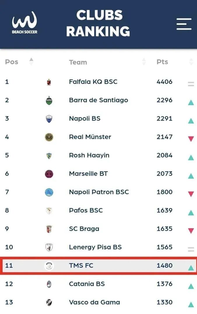 近日,世界沙滩足球俱乐部最新排名公布,来自宁波海曙的浙江全讯足球俱乐部队(以下简称“全讯队”)积分达到1480分,排名从去年的第23位跃升至世界第11位,继续稳居亚洲所有沙滩足球俱乐部首位。